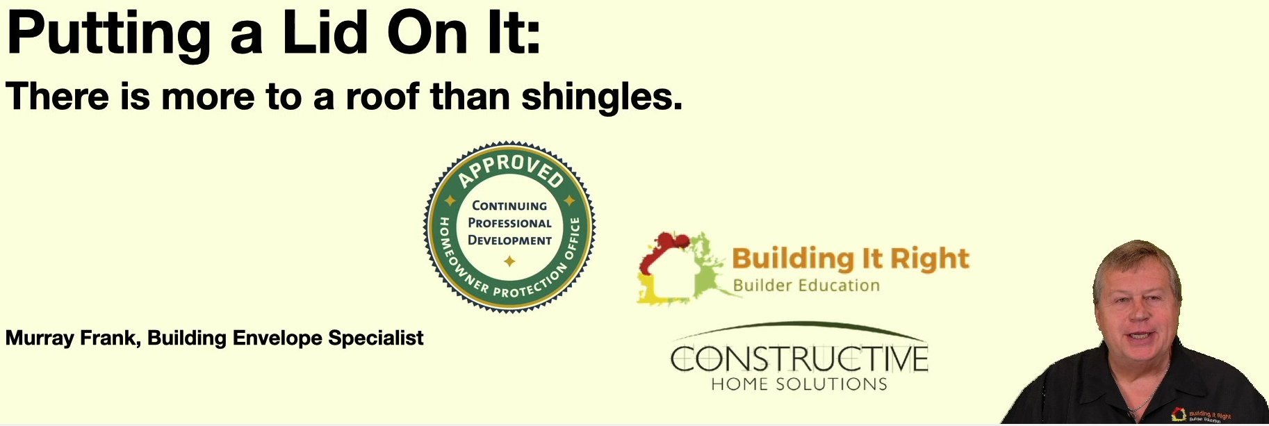 Session 4 - Putting a Lid On It: There is more to a roof than shingles.
